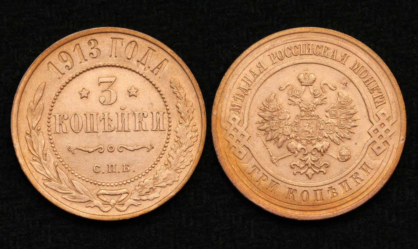 Монета царской России 3 копейки 1913 год