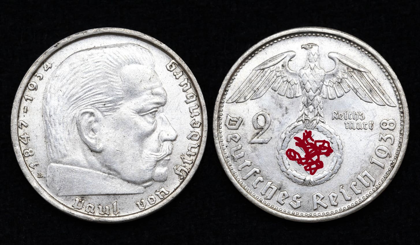 Монета Германия Третий рейх 2 рейхсмарки 1938 год