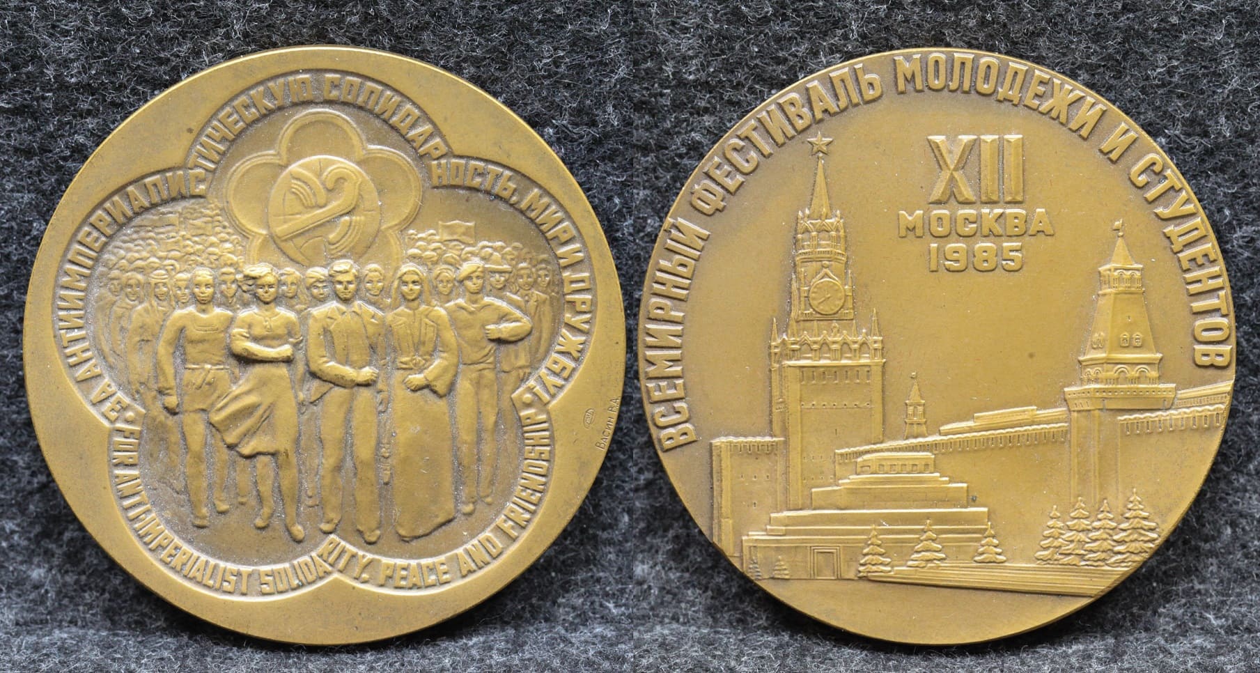 Настольная медаль Всемирный фестиваль молодёжи и студентов Москва 1985 год