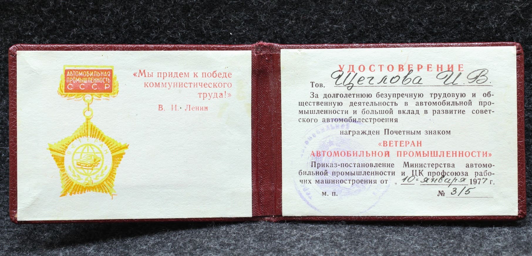 Знак Ветеран автомобильной промышленности С удостоверением!