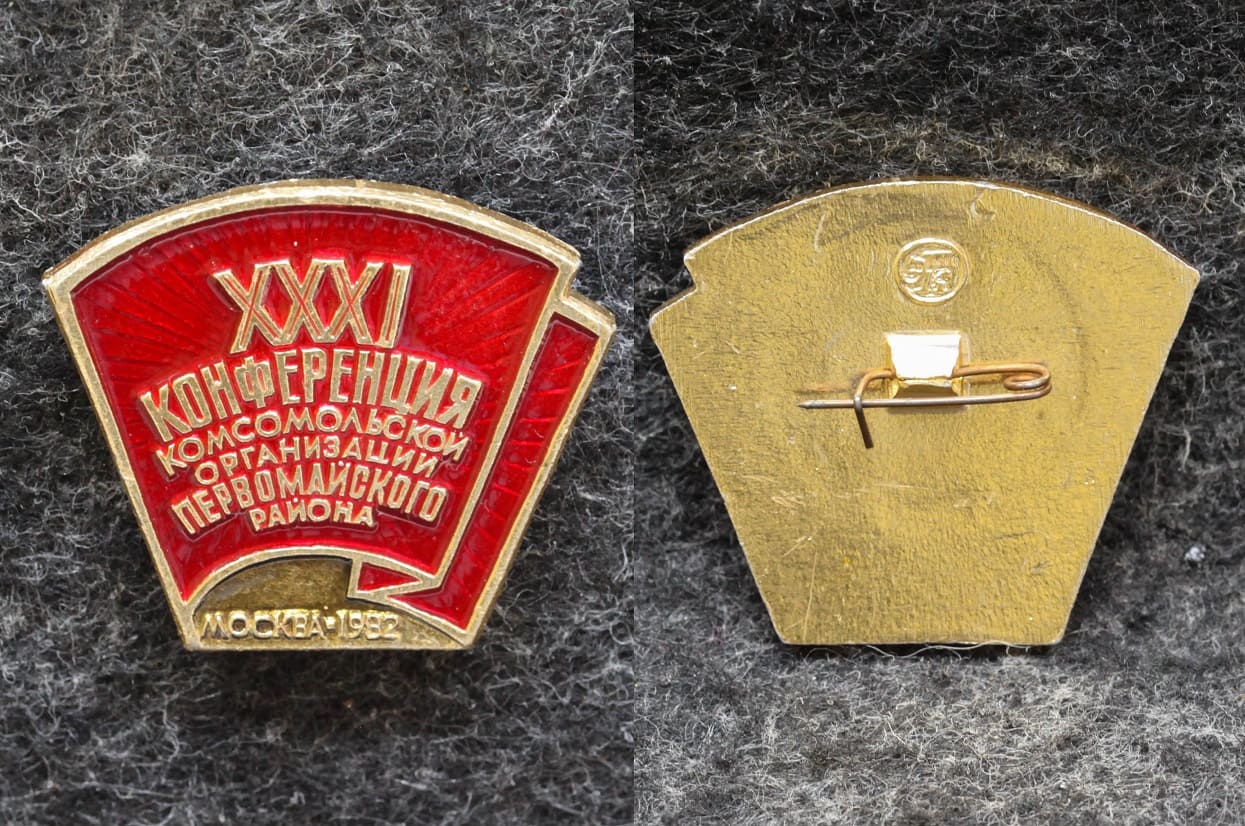 Знак ВЛКСМ 31 конференция комсомольской организации Первомайского района Москва 1982 год